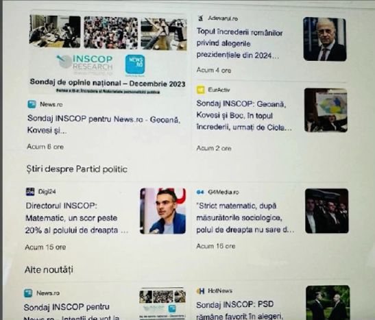 "Cine comandă aceste sondaje în care invariabil Geoană iese învingător? Ca să înțelegeți mai bine, trebuie să înțelegeți că oamenii aceștia sunt interconectați: sondajul îl comandă Orlando Nicoară de la News.ro, cel care are legături cu Tomșa și Teszari. Cei de la News au contract la INSCOP, care le livrează săptămână de săptămână sondaje pe care și le vântură între ei, adică în zonele media unde au avut tangențe cu personaje din Statul Paralel," a explicat Anca Alexandrescu.