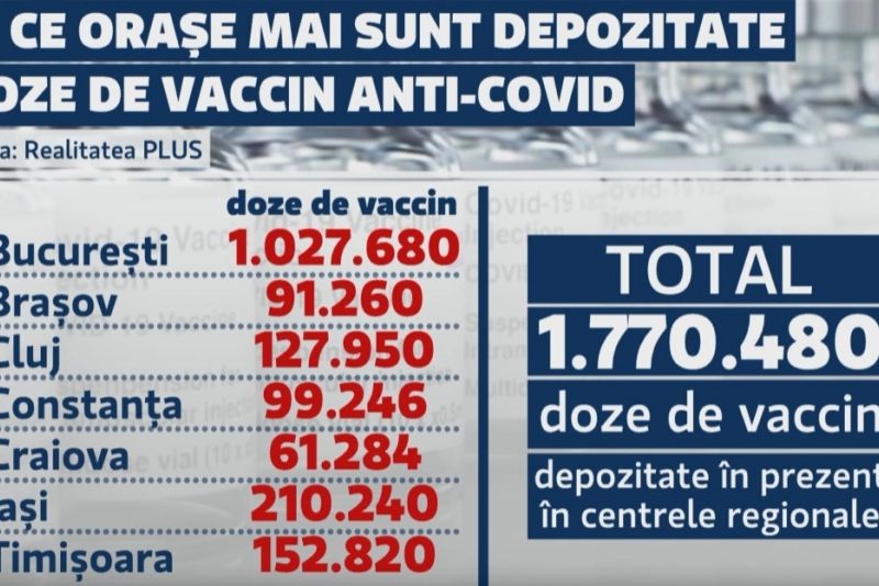 În acest moment, România are în stoc 1.770.480 de doze de vaccinuri, cele mai multe se află la Institutul Cantacuzino, care expiră la 31.07.2024.