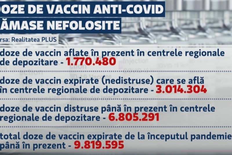 Informația halucinantă este că în acest moment, la 24.11.2023, România are 3.014.304 doze expirate, nedistruse încă, și tot la data de 24.11.2023, România a distrus 6.805.291 de doze expirate. În total, 9.819.595 de doze expirate astăzi, 24.11.2023.