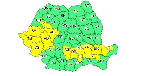 ATENȚIONARE METEOROLOGICĂ - COD GALBEN