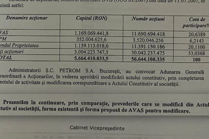 "Se modifica actul constitutiv al Petrom, din aprilie 2007. In acest document apare foarte clar la pagina 3, ca să vedeți minciunile celor care spuneau că nu știu ce era în contractul Petrom