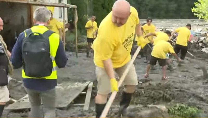 UPDATE - voluntarii AUR, „înarmați” cu lopeți, fac eforturi pentru a înlătura urmele dezastrului lăsate de natura dezlănțuită.
