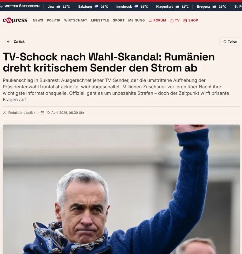 A fost retrasă licența unui post de știri independent din România. Acesta prezenta informații despre anularea primului tur al alegerilor prezidențiale din 2024.În decembrie 2024, întreaga Europă a fost șocată de situația din România, unde primul tur al alegerilor prezidențiale, câștigat de Călin Georgescu, a fost anulat din cauza unor presupuse manipulări electorale desfășurate în afara țării. Printre acuzații s-a numărat și finanțarea de către Rusia a conținutului pro-Georgescu de pe TikTok. Cu toate acestea, conform investigațiilor jurnaliștilor, campania a fost finanțată de Partidul Național Liberal Român, partid conservator-liberal. Acum se dovedește că unul dintre posturile de televiziune, Realitatea Plus, care a relatat subiectul, și-a pierdut licența de emisie.