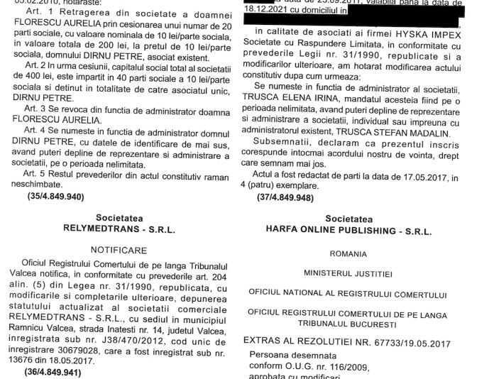 La nici două luni de la înființarea firmei Harfa Online Publishing SRL, compania deținută de Vîlcu junior și Vîlcu senior decide să se retragă din acționariat, vânzându-și pachetul către ceilalți asociați.