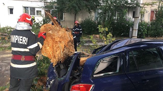 O furtună de scurtă durată a rupt cel puțin doi copaci în municipiul Brăila, unul prăbușindu-se peste un autoturism și distrugându-l în totalitate.