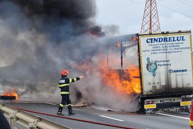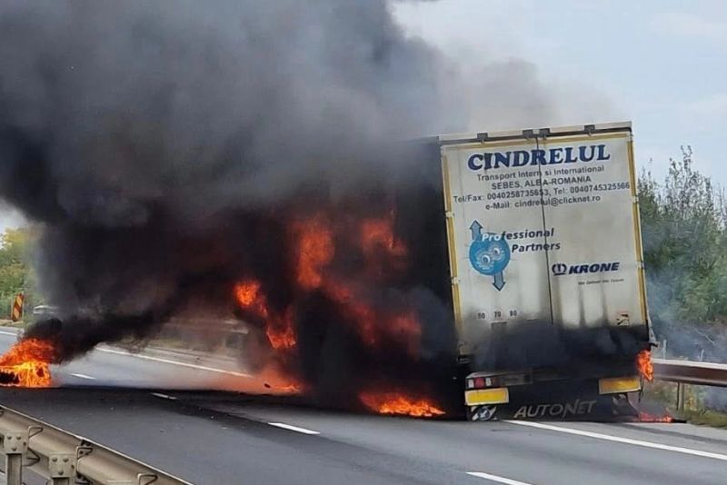 UN TIR A LUAT FOC ÎN MERS PE A1