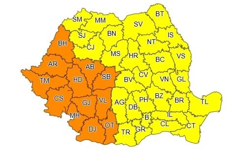 În intervalul menționat, în Maramureș, Transilvania, Oltenia, Banat, Crișana, vestul și nordul Munteniei și al Moldovei, vor fi perioade cu instabilitate atmosferică deosebit de accentuată. Vor fi vijelii puternice, intensificări ale vântului cu rafale de peste 80...100 km/h, frecvente descărcări electrice și grindină de medii și mari dimensiuni. Aversele vor fi torențiale, iar cantitățile de apă vor depăși local 35...50 l/mp și izolat, îndeosebi în vest, centru și la munte, 70 l/mp.