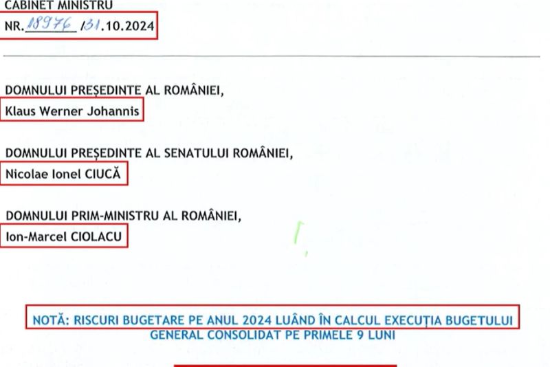 Pe 31 octombrie 2024, poșta militară a Serviciului Român de Informații a preluat un document de la Ministerul Finanțelor adresat către trei dintre cei mai importanți oameni din statul român, după cum arată Europa Liberă.