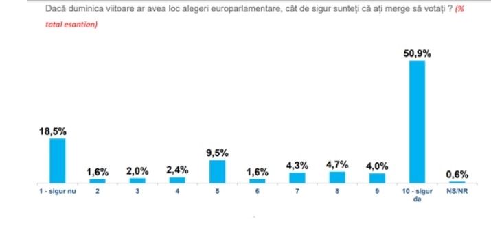 PSD ar obţine 29,5% din voturi, PNL – 18,8%, AUR – 18,4% dacă duminică ar avea loc alegeri pentru Parlamentul European, relevă un sondaj realizat de INSCOP, procentele fiind raportate la numărul celor care au exprimat preferinţa pentru un partid din listă, indiferent dacă declară că vin sau nu vin sigur vot. Procentele se modifică în cazul celor care declară că în mod singur vor merge să voteze şi care şi-au exprimat preferinţa pentru un partid din listă.
